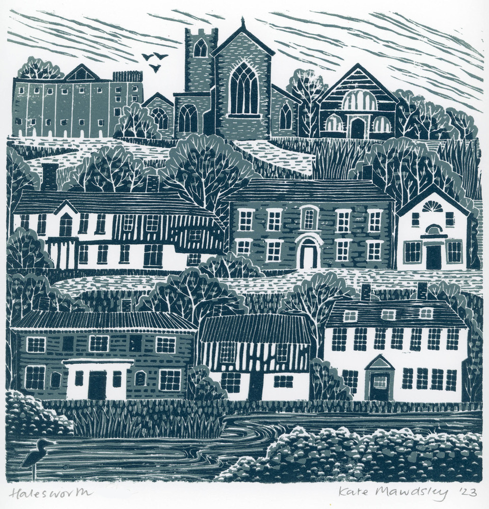 The major buildings which make up this pretty market town in Suffolk. Printed on Somerset paper using oil based inks.